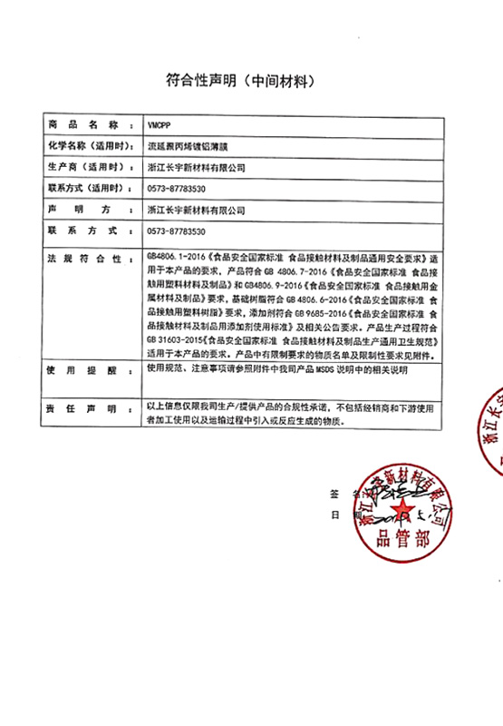 Changyu är pionjären och förespråkaren för "transparent aluminiumoxidfilm för förpackning" på den kinesiska marknaden, vi har gjort otroliga ansträngningar för utveckling och marknadsföring av denna produkt, Changyu är också konsitnören för pågående stora nationella standardprojekt "Kvalitetsgenerliga regler för oxider barriär transparent plaster laminerade filmer och pouchar för livsmedelsförpackning.