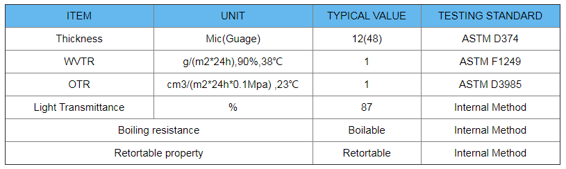 ALOX -belagd husdjursfilm uppnår underlägsen barriäregenskap än aluminiumfolie genom att deponera tätt ALOX -molekylskikt på husdjurssubstratfilmen. För närvarande kan Changyu bättre barriäregenskap få OTR -värde och WVTR -värde både under 1.0, med detaljerad information enligt nedan.